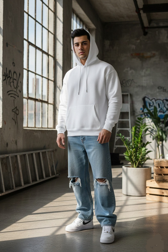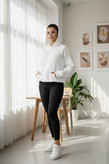 قابلیت ست شدن بالا: رنگ سفید این هودی به شما اجازه میدهد آن را با شلوار جین، لگینگ، دامن و حتی زیر کتها و پالتوها به راحتی ست کنید.