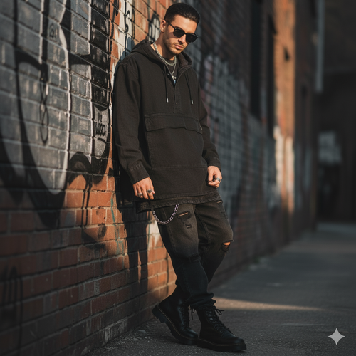 هودی مشکی اوور سایز LANE SEVEN